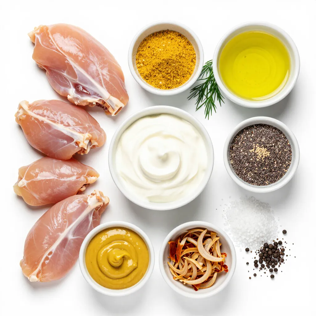 Diese Zutaten bilden die Basis für ein saftiges und schmackhaftes Gericht. Das Hähnchen bleibt zart und die Marinade sorgt für viel Geschmack.