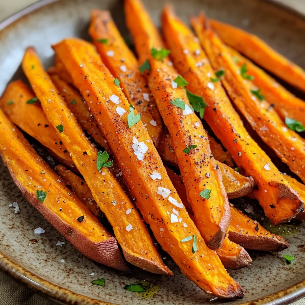 - 2 mittelgroße Süßkartoffeln - 2 Esslöffel Olivenöl - 1 Teelöffel geräuchertes Paprikapulver - 1 Teelöffel Knoblauchpulver - ½ Teelöffel Zwiebelpulver - ½ Teelöffel Meersalz - ¼ Teelöffel schwarzer Pfeffer - Gehackte frische Petersilie Bei der Zubereitung von Süßkartoffel-Pommes ist die Auswahl der Zutaten entscheidend. Ich empfehle, du nimmst frische Süßkartoffeln. Sie sollten fest und frei von Makeln sein. Olivenöl ist ideal, da es gut mit den Gewürzen harmoniert und die Pommes knusprig macht. Die Gewürze sind ebenfalls wichtig. Das geräucherte Paprikapulver gibt einen tollen Geschmack. Knoblauchpulver und Zwiebelpulver fügen eine angenehme Tiefe hinzu. Meersalz und schwarzer Pfeffer sorgen für die richtige Würze. Für eine schöne Präsentation kannst du die Pommes mit frischer Petersilie garnieren. Diese Garnitur bringt Farbe und einen frischen Geschmack. So wirken die Pommes noch einladender. Heize die Heißluftfritteuse auf 200°C (400°F) vor. Lass sie etwa 5 Minuten laufen. Das Vorheizen macht die Pommes gleichmäßiger knusprig. Nimm 2 mittelgroße Süßkartoffeln. Schäle sie und schneide sie in dünne Pommes. Gib die geschnittenen Pommes in eine große Schüssel. Mische sie gründlich mit 2 Esslöffeln Olivenöl. Achte darauf, dass jede Pommes gut bedeckt ist. Jetzt kommt der spaßige Teil! Streue 1 Teelöffel geräuchertes Paprikapulver, 1 Teelöffel Knoblauchpulver, ½ Teelöffel Zwiebelpulver, ½ Teelöffel Meersalz und ¼ Teelöffel schwarzen Pfeffer über die Pommes. Mische alles gut durch. So schmecken die Pommes richtig gut! Lege die gewürzten Pommes in einer einzigen Schicht in den Korb der Heißluftfritteuse. Frittiere die Pommes für etwa 15-18 Minuten. Schüttle den Korb in der Hälfte der Zeit. Das sorgt für gleichmäßiges Garen. Die Pommes sollten goldbraun und knusprig sein. Nimm die Pommes aus der Heißluftfritteuse. Lege sie auf einen Servierteller. Du kannst sie mit gehackter frischer Petersilie garnieren. Das sieht toll aus und schmeckt lecker! Um die perfekten Süßkartoffel-Pommes zu machen, achte auf die Dicke. Schneide sie dünn, etwa 1 cm dick. So werden sie gleichmäßig knusprig. Wenn sie dicker sind, brauchen sie länger zum Garen. Experimentiere mit der Dicke, um deinen Lieblingsstil zu finden. Die Garzeit hängt von deiner Heißluftfritteuse ab. Allgemein sind 15 bis 18 Minuten ideal. Wenn du sie weicher magst, lasse sie kürzer garen. Für mehr Knusprigkeit kannst du die Zeit um 2 bis 3 Minuten erhöhen. Schüttle den Korb in der Mitte der Garzeit. So garen die Pommes gleichmäßiger und werden schöner. Die Gewürze machen den Unterschied! Neben geräuchertem Paprika kannst du auch andere Aromen ausprobieren. Cumin und Cayenne-Pfeffer geben einen tollen Kick. Oder verwende Zimt für eine süßere Note. Frische Kräuter wie Rosmarin oder Thymian passen auch gut. Sei kreativ und finde deine Lieblingskombination! {{image_4}} Eine tolle Idee ist, deine Süßkartoffel-Pommes süß und würzig zu machen. Du kannst Zimt und Cayenne-Pfeffer verwenden. Diese Mischung bringt einen interessanten Geschmack. Der Zimt gibt Süße, während der Cayenne-Pfeffer einen leichten Kick hinzufügt. Du wirst überrascht sein, wie gut diese Aromen zusammenpassen. Um noch mehr Geschmack zu bekommen, kannst du Parmesan oder frische Kräuter hinzufügen. Parmesan gibt den Pommes einen herzhaften Geschmack. Frische Kräuter wie Rosmarin oder Thymian verleihen einen frischen und aromatischen Touch. Du kannst auch andere Toppings ausprobieren, wie zum Beispiel Knoblauchöl oder geröstete Nüsse. Diese Optionen machen deine Pommes noch interessanter. Dips passen perfekt zu Süßkartoffel-Pommes. Einige tolle Vorschläge sind Ketchup, Aioli oder Guacamole. Ketchup ist klassisch und einfach. Aioli bietet eine cremige Note, die gut zu den Pommes passt. Guacamole bringt einen frischen und gesunden Geschmack. Du kannst auch einen scharfen Dip ausprobieren, um einen aufregenden Kontrast zu schaffen. Um deine übrig gebliebenen Süßkartoffel-Pommes frisch zu halten, lege sie in einen luftdichten Behälter. Dadurch vermeidest du, dass sie weich werden. Du kannst auch Backpapier zwischen die Pommes legen. Das hilft, Feuchtigkeit zu absorbieren. Um die Pommes wieder knusprig zu machen, benutze die Heißluftfritteuse. Stelle sie auf 180°C (350°F) und erwärme die Pommes für etwa 5-7 Minuten. Alternativ kannst du eine Pfanne mit etwas Öl erhitzen. Brate die Pommes für ein paar Minuten, bis sie warm und knusprig sind. Im Kühlschrank halten sich deine Süßkartoffel-Pommes etwa 3 Tage. Achte darauf, dass sie gut verpackt sind. Nach 3 Tagen können sie an Geschmack verlieren. Verwende sie am besten frisch, um das volle Aroma zu genießen. Für die besten Ergebnisse sollten die Süßkartoffel-Pommes 15 bis 18 Minuten in der Heißluftfritteuse bleiben. Die genaue Zeit hängt von der Dicke der Pommes und deiner Heißluftfritteuse ab. Überprüfe die Pommes nach 10 Minuten. Schüttle den Korb, um ein gleichmäßiges Garen zu sichern. Wenn sie goldbraun und knusprig sind, sind sie fertig. Ja, du kannst die Pommes ohne Öl machen. Die Pommes werden zwar nicht so knusprig, aber sie sind trotzdem lecker. Wenn du kein Öl verwenden willst, schneide die Süßkartoffeln dünner. Das hilft, die Knusprigkeit zu erhöhen. Du kannst auch Gewürze hinzufügen, um den Geschmack zu verbessern. Süßkartoffeln sind sehr nahrhaft. Sie enthalten viel Vitamin A, das gut für die Augen ist. Außerdem sind sie reich an Ballaststoffen, die gut für die Verdauung sind. Süßkartoffeln haben auch Antioxidantien, die helfen, deinen Körper zu schützen. Sie sind eine gesunde Wahl für Snacks oder Beilagen. Um deine Pommes noch knuspriger zu machen, gibt es ein paar Tipps. Achte darauf, die Süßkartoffeln gleichmäßig zu schneiden. Dünnere Pommes werden knuspriger. Du kannst auch die Heißluftfritteuse vorheizen. Ein weiterer Trick ist, die Pommes in einer einzigen Schicht ohne Üb