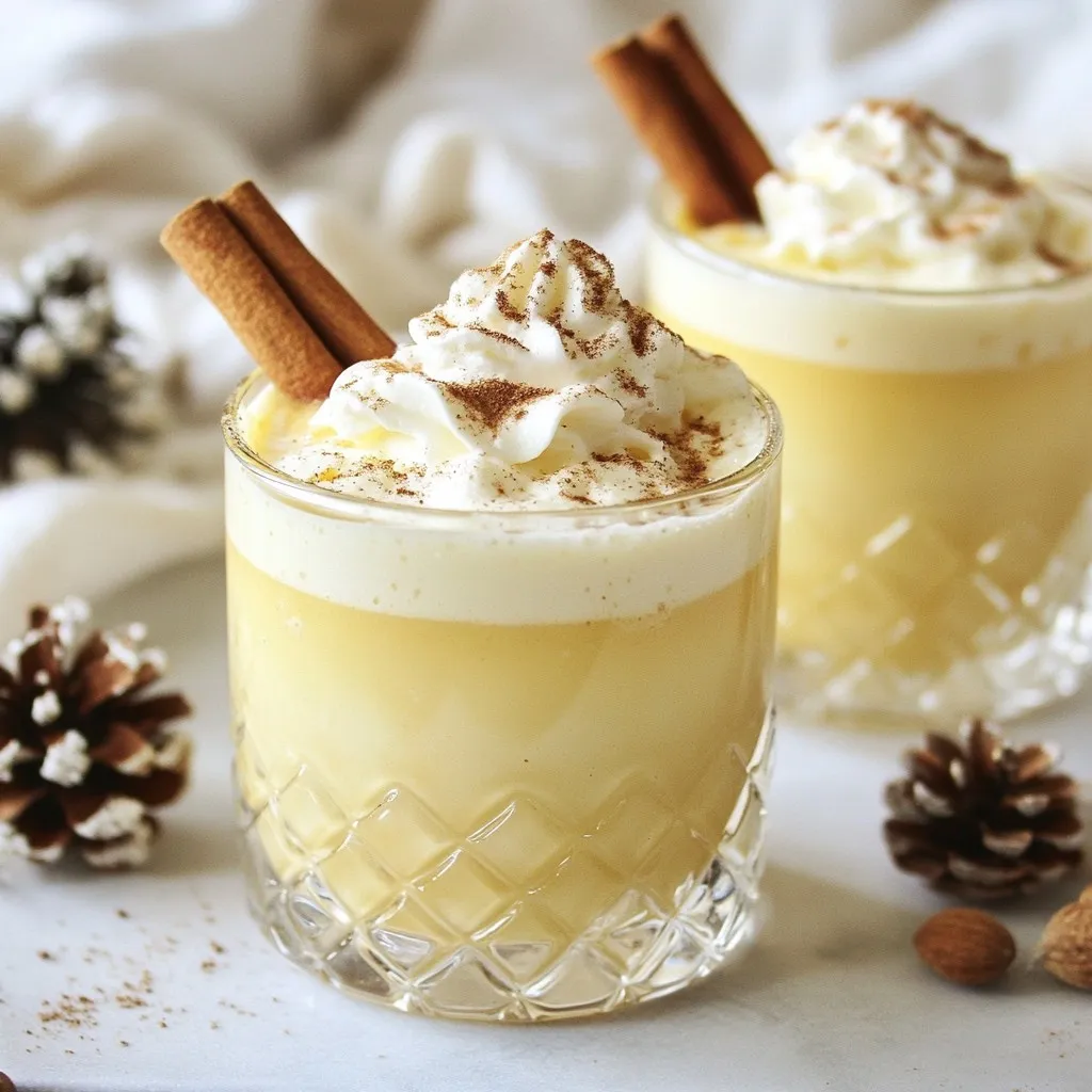 Ein festliches Getränk mit Eierlikör und Mandelsirup, perfekt für die Feiertage.
