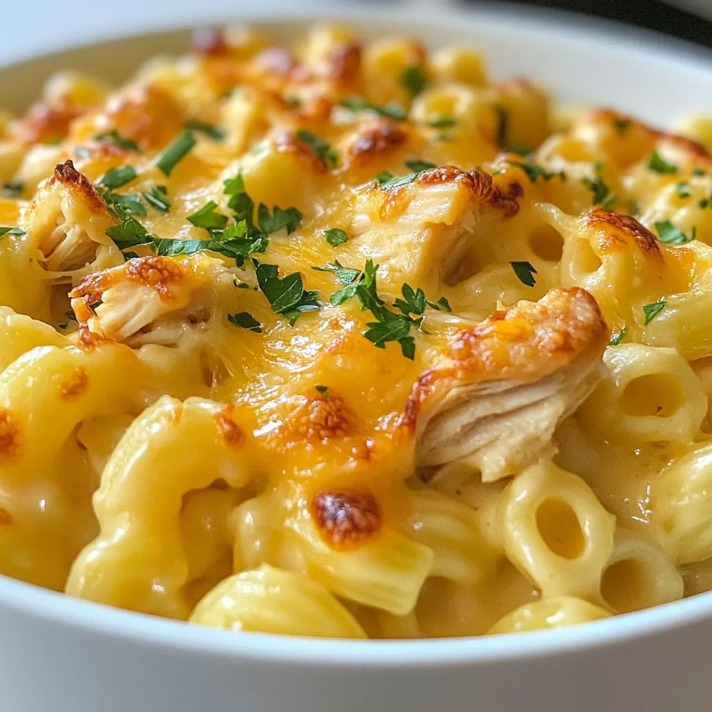 Ein cremiges und herzhaftes Gericht mit Hähnchen, Käse und BBQ-Sauce.