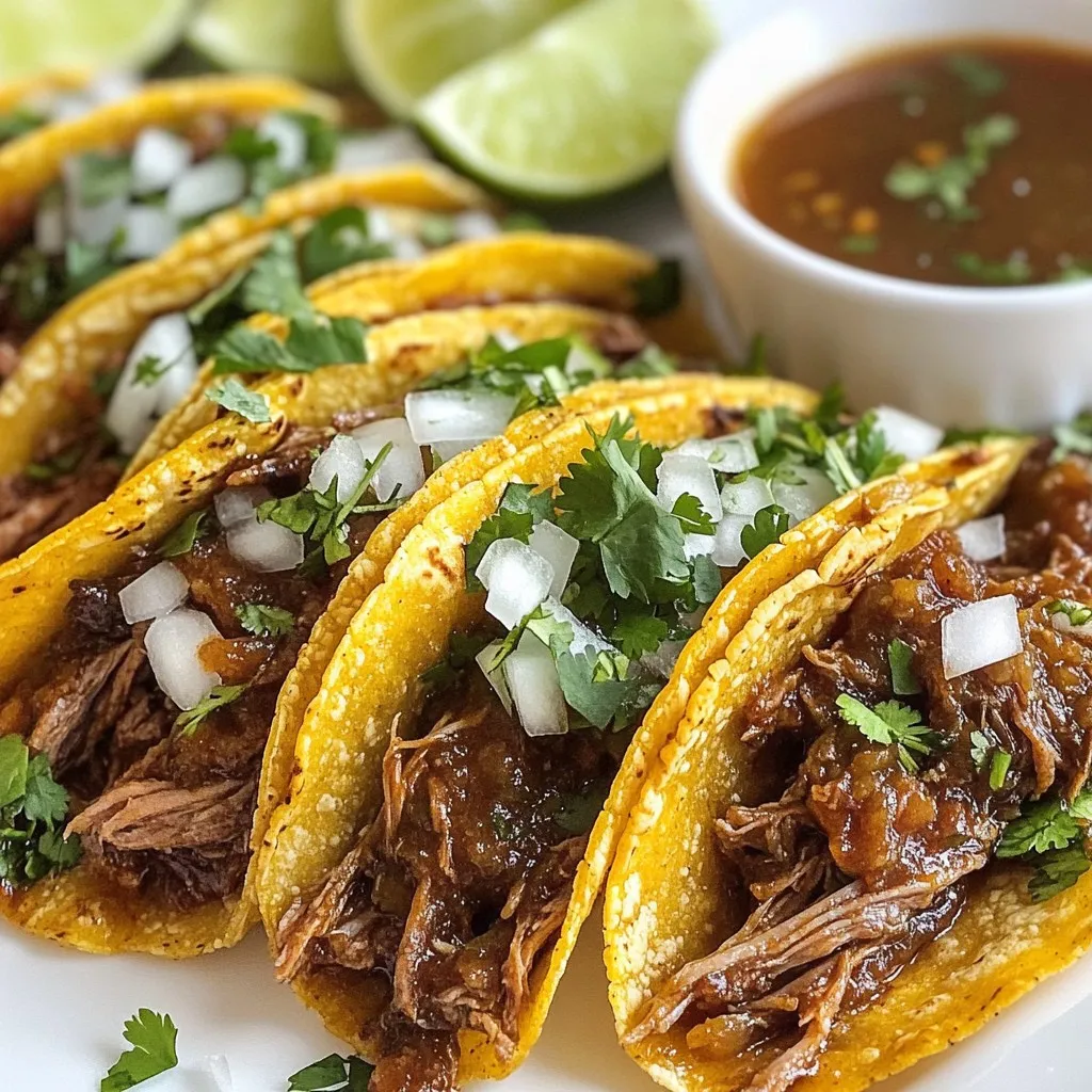 Die richtigen Beilagen machen die Birria Tacos noch besser. Ich empfehle, frische Salsa und Guacamole zu servieren. Diese bringen Frische und Cremigkeit. Limettenspalten sind wichtig, um die Tacos spritzig zu machen. Zu trinken passen gut ein kühles Bier oder ein erfrischender Agua Fresca. Diese Getränke ergänzen die Aromen perfekt.