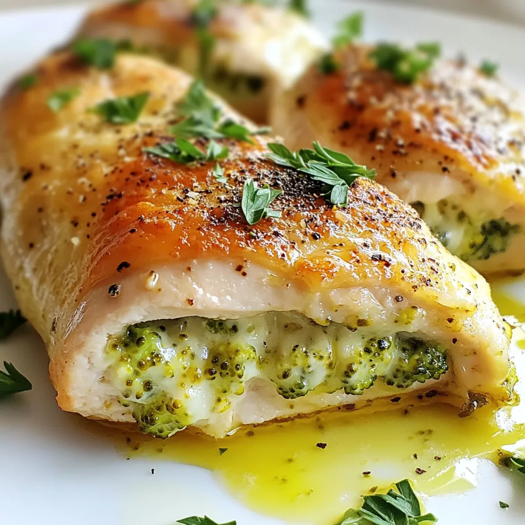 Eine köstliche Hähnchenbrust gefüllt mit einer cremigen Brokkolimischung.