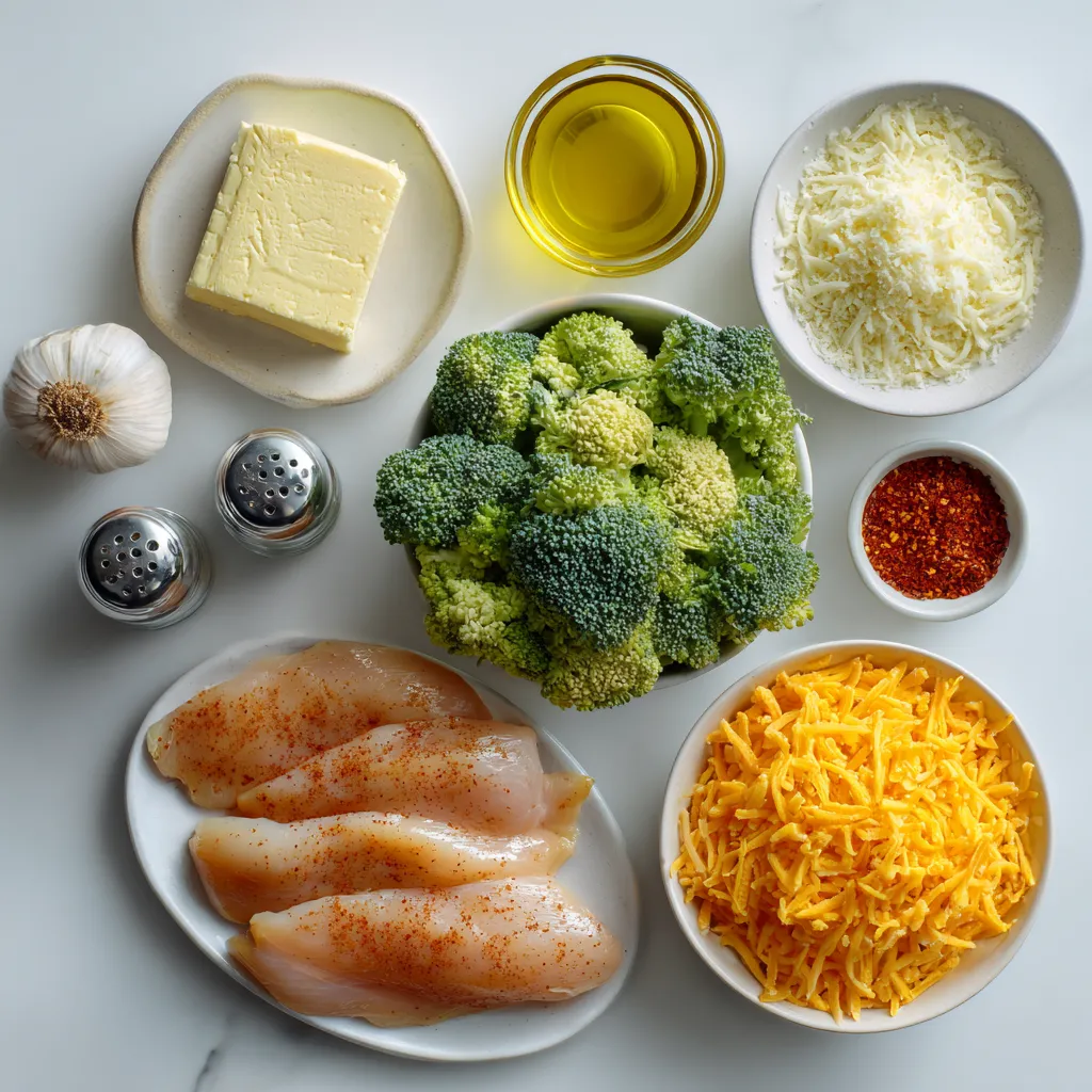 Hauptzutaten für brokkoli gefüllte Hähnchenbrust
