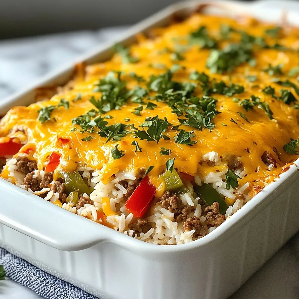 Ein herzhaftes und sättigendes Gericht mit Rinderhackfleisch, Reis und Käse.