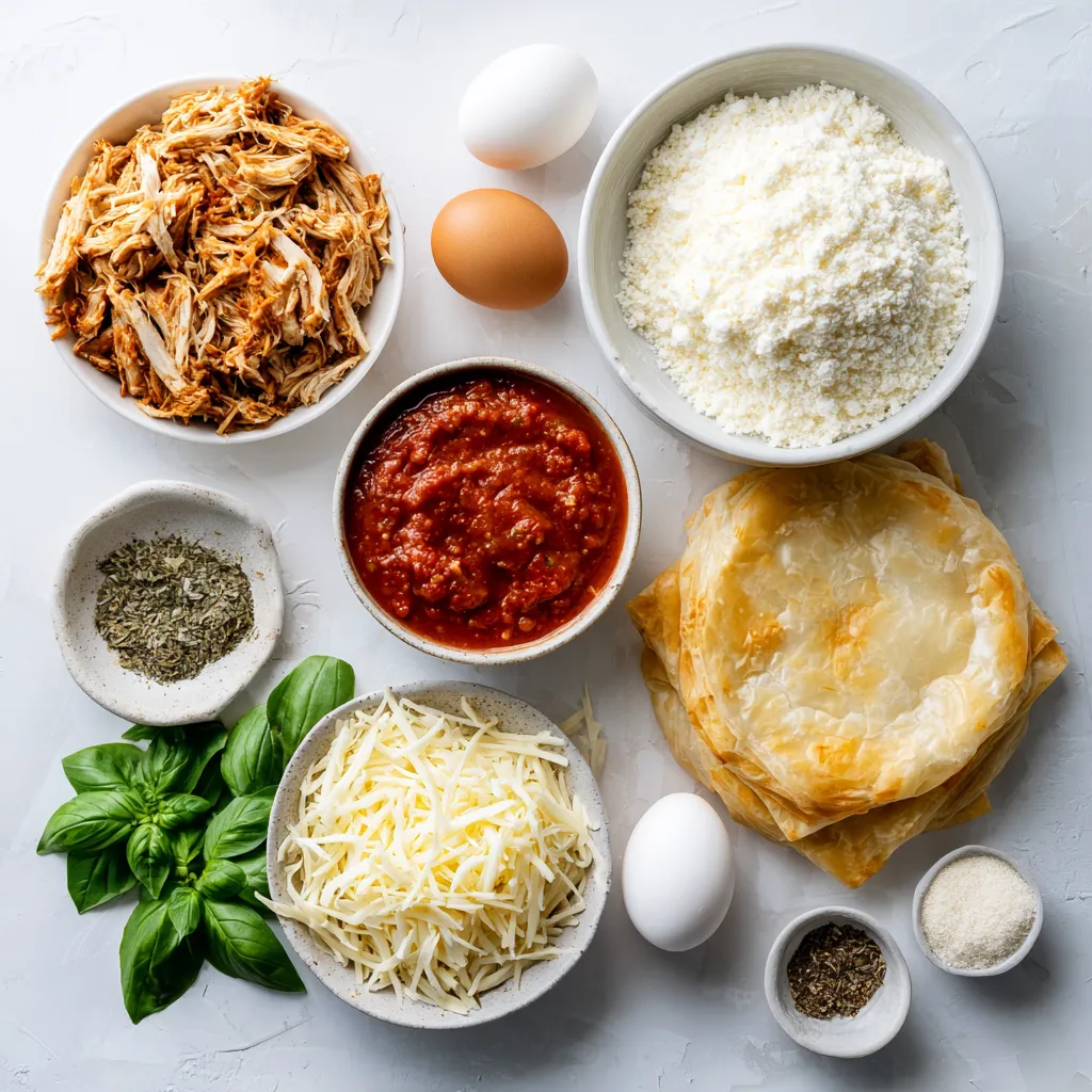 Hauptzutaten für Hühnchen Parmesan Kissen