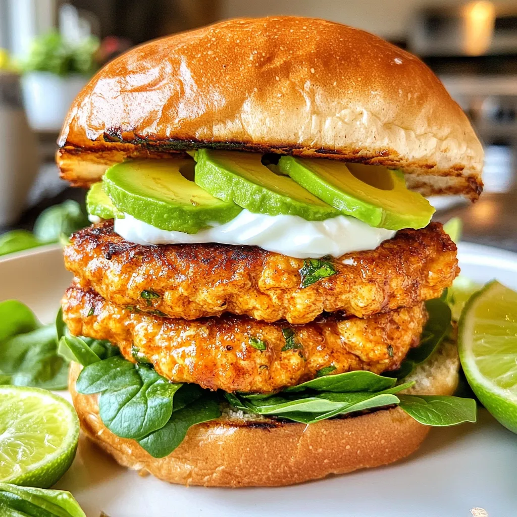 Servieren Sie die Burger auf einem Holzbrett, garniert mit Limettenspalten und zusätzlichen Avocadoscheiben für einen frischen Look. Fügen Sie eine Beilage aus Süßkartoffelpommes hinzu, um das Gericht zu vervollständigen!