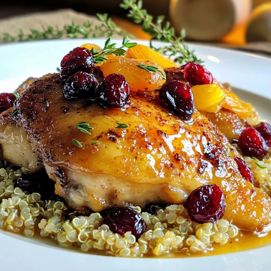 Ein köstliches Gericht mit Hühnerkeulen, Cranberries und getrockneten Aprikosen.