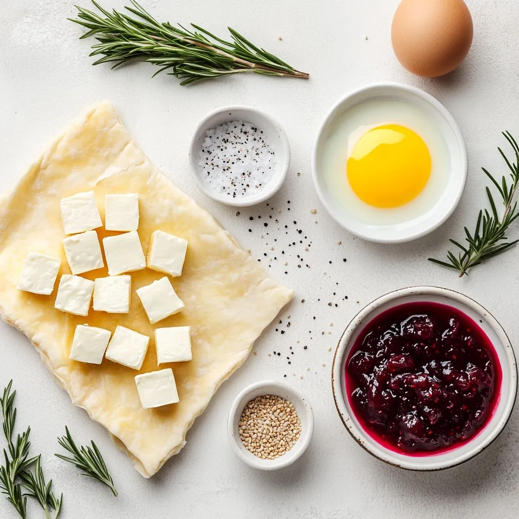 Die Hauptzutaten sind einfach und lecker. Blätterteig sorgt für einen knusprigen Biss. Brie-Käse hat einen samtigen, cremigen Geschmack. Cranberrysoße bringt eine süß-saure Note, die perfekt passt. Diese Kombination macht die Cranberry Brie Bombs spannend.