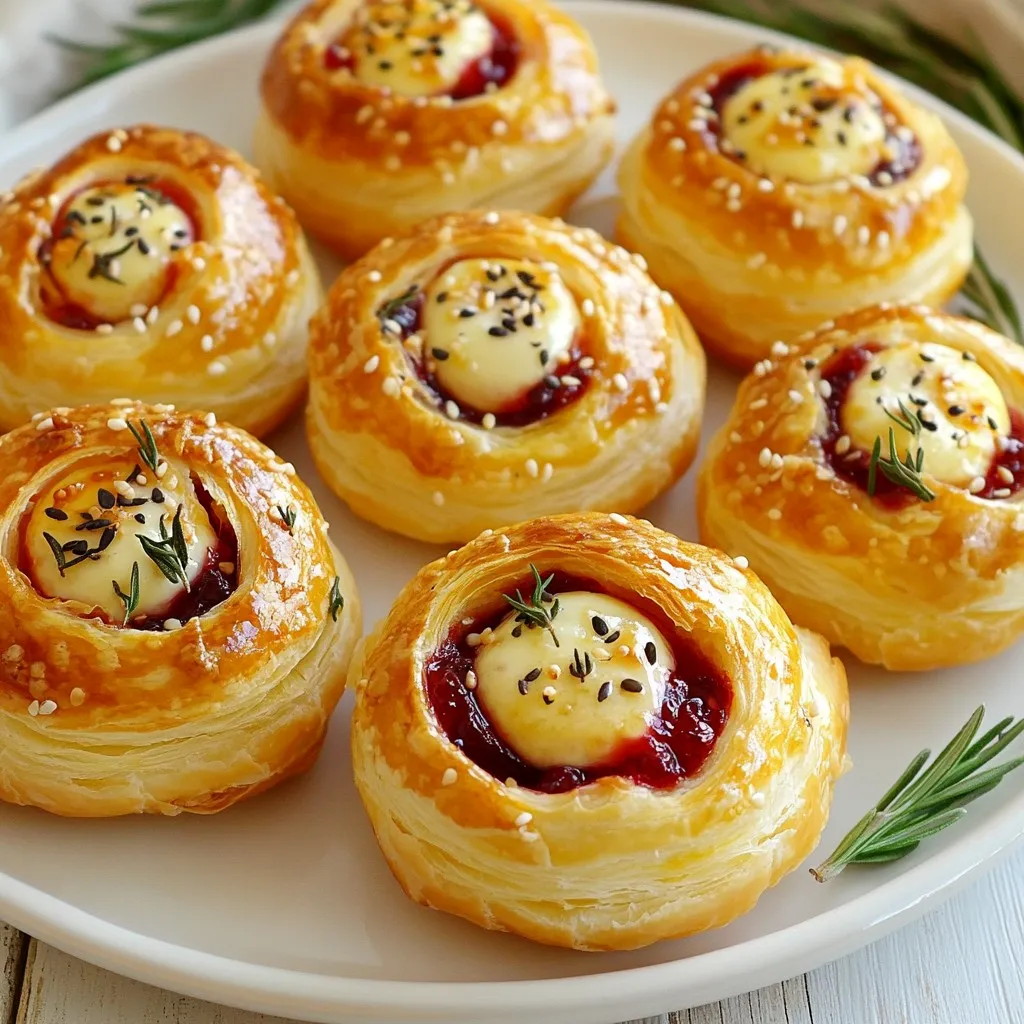 Leckere Blätterteigtaschen gefüllt mit Brie-Käse und Cranberrysoße.