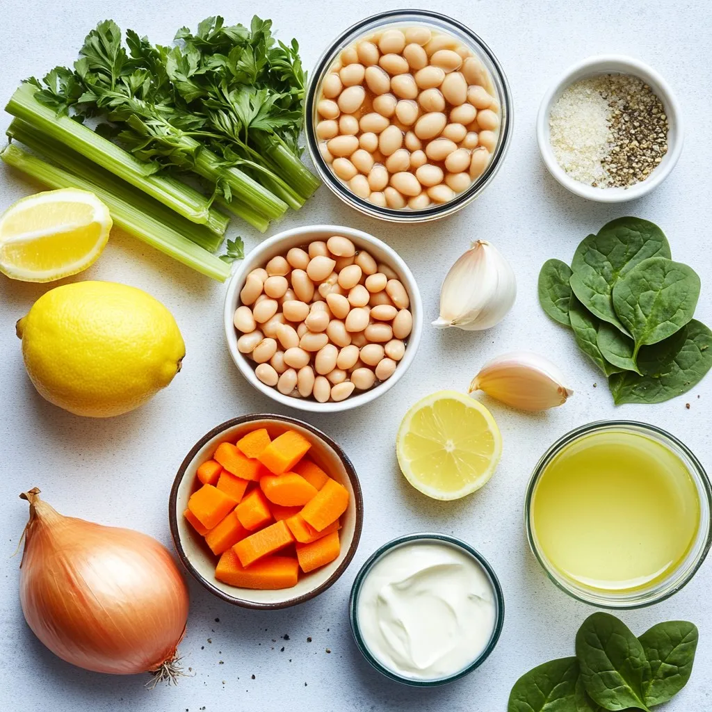 Eine köstliche und cremige Suppe mit weißen Bohnen und frischem Zitronengeschmack.