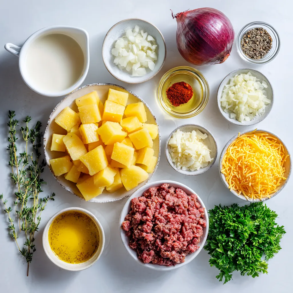 Ein herzhaftes Gericht mit Rindfleisch und Kartoffeln in einer cremigen Sauce.