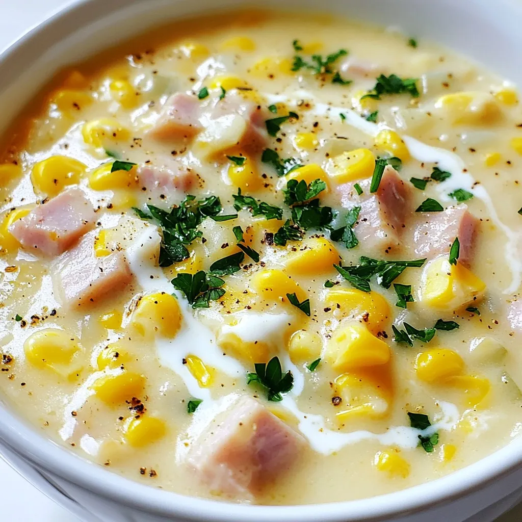 Falls du einige Zutaten nicht hast, gibt es tolle Alternativen. Du kannst den Schinken durch Speck oder Truthahn ersetzen. Wenn du die Brühe nicht hast, benutze Gemüsebrühe für eine vegetarische Option. Für eine cremigere Textur kannst du auch Crème fraîche anstelle von Schlagsahne verwenden. Wenn du keinen frischen Mais hast, ist gefrorener Mais eine gute Wahl. Mit diesen Tipps kannst du die Suppe leicht anpassen.