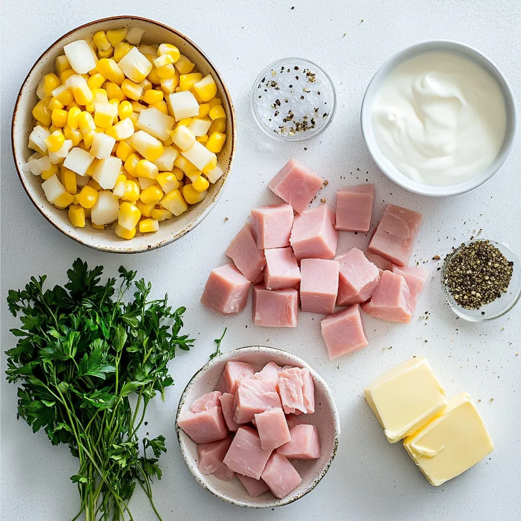 Hauptzutaten für die cremige Schinken- und Mais-Cremesuppe