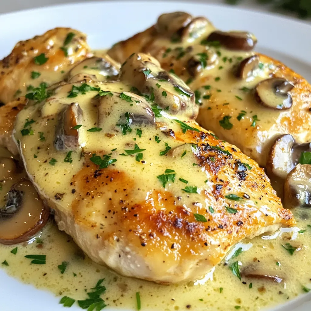 Ein köstliches Hühnchenrezept mit einer cremigen Knoblauch-Pilzsauce.