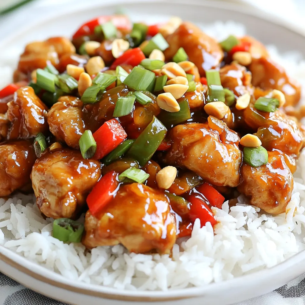 - 680 g Hähnchenbrustfilets ohne Knochen und Haut, in mundgerechte Stücke geschnitten - 120 g geröstete, ungesalzene Erdnüsse - 1 rote Paprika, gewürfelt - 1 grüne Paprika, gewürfelt - 1 Zwiebel, gehackt In diesem Rezept brauchst du frische Hähnchenbrust. Sie bleibt zart und saftig beim Kochen. Verwende auch die beiden Paprikasorten. Sie geben dem Gericht Farbe und Geschmack. Die Zwiebel sorgt für einen süßen, herzhaften Biss. Die Erdnüsse fügen eine knusprige Note hinzu. Sie sind wichtig für den klassischen Kung Pao Geschmack. - 60 ml Sojasauce (low sodium) - 30 ml Reisessig - 15 ml Sesamöl - 30 ml Hoisinsauce - 15 g brauner Zucker - 1 Teelöffel rote Paprikaflocken (nach Geschmack anpassen) - 60 ml Hühnerbrühe - Salz und Pfeffer nach Geschmack Die Sojasauce bringt einen salzigen Umami-Geschmack. Der Reisessig fügt einen milden, säuerlichen Kick hinzu. Das Sesamöl gibt ein nussiges Aroma. Die Hoisinsauce bringt eine süße und dicke Textur ins Spiel. Der braune Zucker verstärkt die Süße und balanciert die Schärfe. Rote Paprikaflocken geben die richtige Würze. Du kannst die Schärfe nach deinem Geschmack anpassen. Mit diesen Zutaten machst du ein tolles Gericht. Es ist einfach, lecker und perfekt für den Crockpot. {{ingredient_image_2}} Um das Hähnchen zu marinieren, mische die folgenden Zutaten in einer großen Schüssel: - 680 g Hähnchenbrustfilets - 60 ml Sojasauce - 30 ml Reisessig - 15 ml Sesamöl - 30 ml Hoisinsauce - 15 g brauner Zucker - 3 gehackte Knoblauchzehen - 2 Esslöffel frisch gehackter Ingwer - 1 Teelöffel rote Paprikaflocken Rühre alles gut um, bis das Hähnchen gleichmäßig bedeckt ist. Lass das Hähnchen dann mindestens 30 Minuten marinieren. Wenn du mehr Zeit hast, mariniere es über Nacht. So wird der Geschmack besser. Lege die marinierten Hähnchenstücke in den Crockpot. Schichte dann die anderen Zutaten darauf: - 1 gehackte Zwiebel - 1 gewürfelte rote Paprika - 1 gewürfelte grüne Paprika - 60 ml Hühnerbrühe Rühre vorsichtig um, damit sich alles gut vermischt. Achte darauf, die Hühnerbrühe gleichmäßig zu verteilen. Diese Brühe hilft, das Hähnchen saftig zu halten. Du kannst das Hähnchen auf zwei Arten garen. Wähle entweder die niedrige Stufe für 4-6 Stunden oder die hohe Stufe für 2-3 Stunden. Beide Methoden machen das Hähnchen zart. Achte darauf, das Hähnchen während des Kochens nicht zu oft zu öffnen. So bleibt die Hitze im Crockpot. 30 Minuten vor dem Servieren füge die 120 g geröstete Erdnüsse hinzu. Sie geben dem Gericht einen schönen Crunch. Am Ende überprüfe den Geschmack. Füge nach Bedarf Salz, Pfeffer oder mehr Paprikaflocken hinzu. - Vorbereitungszeit optimieren: Beginne mit dem Schneiden der Hähnchenbrust und Gemüse. Wenn du alles im Voraus machst, sparst du Zeit. Lege alles bereit, bevor du mit dem Kochen startest. Du kannst die Zutaten auch einen Tag vorher marinieren. So zieht das Hähnchen besser durch. - Gewürze anpassen: Du kannst die Gewürze nach deinem Geschmack ändern. Wenn du es schärfer magst, füge mehr rote Paprikaflocken hinzu. Oder ersetze die rote Paprika durch grüne für eine andere Note. Experimentiere mit weiteren Gewürzen wie Knoblauchpulver oder Kreuzkümmel. So machst du das Gericht einzigartig. - Serviertipps mit Reis: Serviere das Kung Pao Chicken über heißem, gekochtem Reis. Der Reis nimmt die Säfte gut auf. Du kannst auch Jasmin- oder Basmati-Reis verwenden, um mehr Geschmack zu bringen. Achte darauf, eine große Schüssel zu wählen, um alles gut zu zeigen. - Verwendung von Frühlingszwiebeln: Schneide die Frühlingszwiebeln in feine Ringe. Streue sie über das fertige Gericht. Sie sorgen für einen frischen Geschmack und eine schöne Farbe. Du kannst auch etwas Limette daneben legen. So gibst du dem Gericht einen spritzigen Kick. Pro Tipps Hähnchen marinieren: Für den besten Geschmack solltest du das Hähnchen mindestens 30 Minuten vor dem Kochen marinieren. Je länger, desto besser! Gemüse frisch halten: Füge das Gemüse erst in den letzten 30 Minuten der Kochzeit hinzu, um sicherzustellen, dass es knackig bleibt. Erdnüsse knusprig: Für extra Crunch kannst du die Erdnüsse kurz vor dem Servieren anbraten, anstatt sie direkt in den Crockpot zu geben. Servierideen: Serviere das Gericht mit Limettenvierteln, damit die Gäste ihren eigenen Zitruskick hinzufügen können. {{image_4}} Für mehr Farbe und Geschmack kannst du Zucchini und Karotten hinzufügen. Diese Gemüsesorten bringen Frische und eine feine Süße. Zucchini ist leicht und nimmt die Aromen gut auf. Karotten geben einen schönen Crunch. Wenn du die Paprika ersetzen möchtest, probiere Brokkoli oder grüne Bohnen. Diese Optionen sind knackig und gesund. Du kannst die Menge der Paprika auch verringern, falls du einen milden Geschmack bevorzugst. Statt Hühnchen kannst du Tofu verwenden. Tofu nimmt die Marinade gut auf und ist eine tolle vegane Wahl. Schneide den Tofu in Würfel und mariniere ihn genauso wie das Hühnchen. Alternativ kannst du auch Rind oder Schwein verwenden. Diese Fleischsorten geben dem Gericht einen anderen Geschmack. Achte darauf, die Garzeit anzupassen, wenn du sie wählst. Rind braucht oft etwas länger, um zart zu werden. - Kühlschranklagerung: Bewahre die Reste in einem luftdichten Behälter auf. So bleibt das Gericht frisch. Du kannst es bis zu drei Tage im Kühlschrank lagern. Achte darauf, dass der Behälter gut verschlossen ist, um Gerüche zu vermeiden. - Anweisungen zum Einfrieren: Für eine längere Lagerung kannst du das Kung Pao Chicken einfrieren. Teile das Gericht in Portionen und lege es in gefriergeeignete Beutel. Entferne so viel Luft wie möglich, bevor du sie verschließt. So bleibt es bis zu drei Monate haltbar. - Beste Methoden dafür: Zum Wiedererwärmen kannst du die Mikrowelle oder den Herd verwenden. Wenn du die Mikrowelle nutzt, erhitze das Gericht in kurzen Intervallen. Rühre zwischendurch um, damit es gleichmäßig warm wird. - Tipps zur Verm