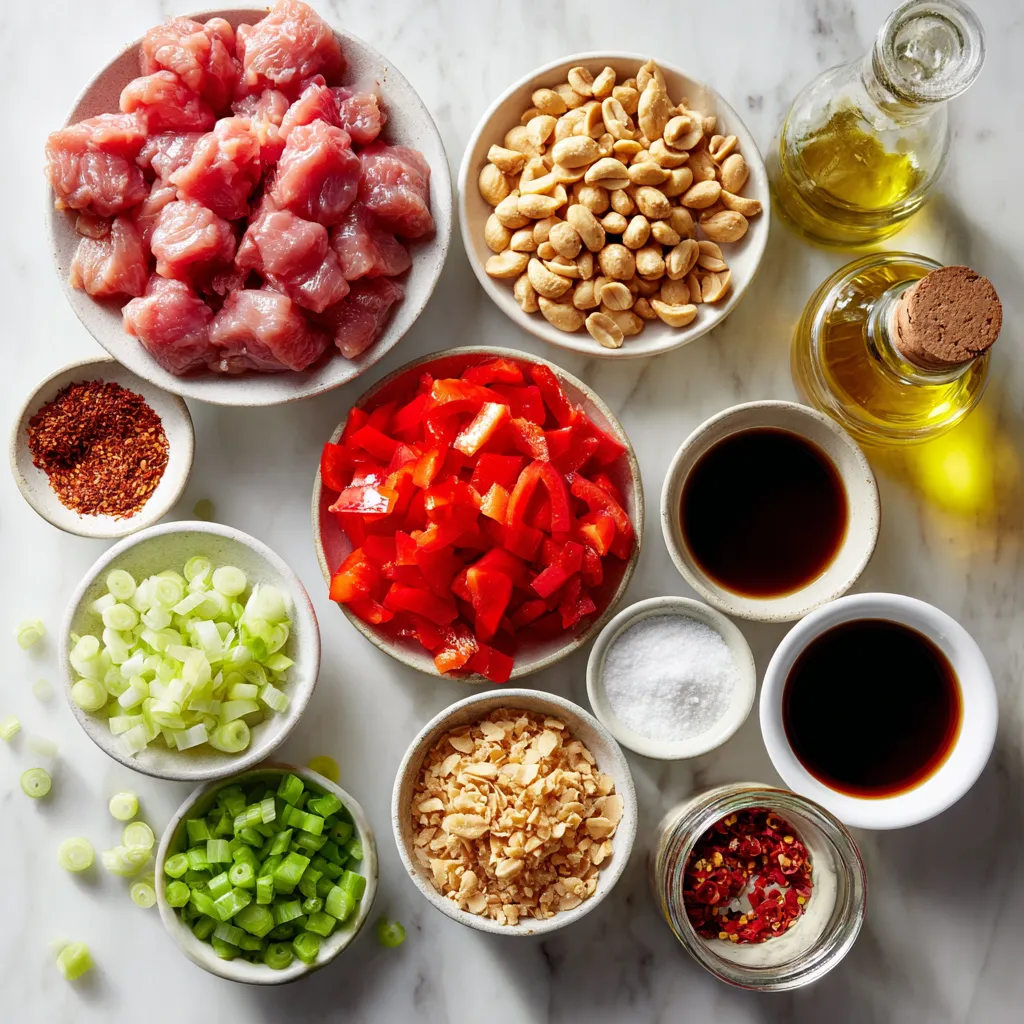 In diesem Rezept brauchst du frische Hähnchenbrust. Sie bleibt zart und saftig beim Kochen. Verwende auch die beiden Paprikasorten. Sie geben dem Gericht Farbe und Geschmack. Die Zwiebel sorgt für einen süßen, herzhaften Biss. Die Erdnüsse fügen eine knusprige Note hinzu. Sie sind wichtig für den klassischen Kung Pao Geschmack.