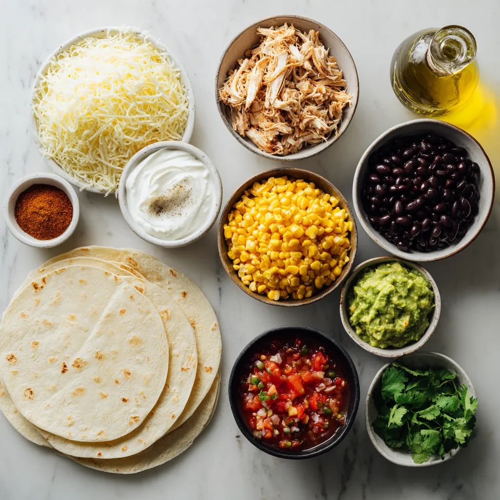 Die Hauptzutaten für Hähnchen-Chimichangas sind einfach zu finden. Hier ist, was du brauchst: