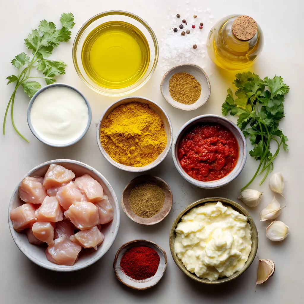 Für ein köstliches Butter Chicken brauchst du einige Hauptzutaten. Hier sind sie:
