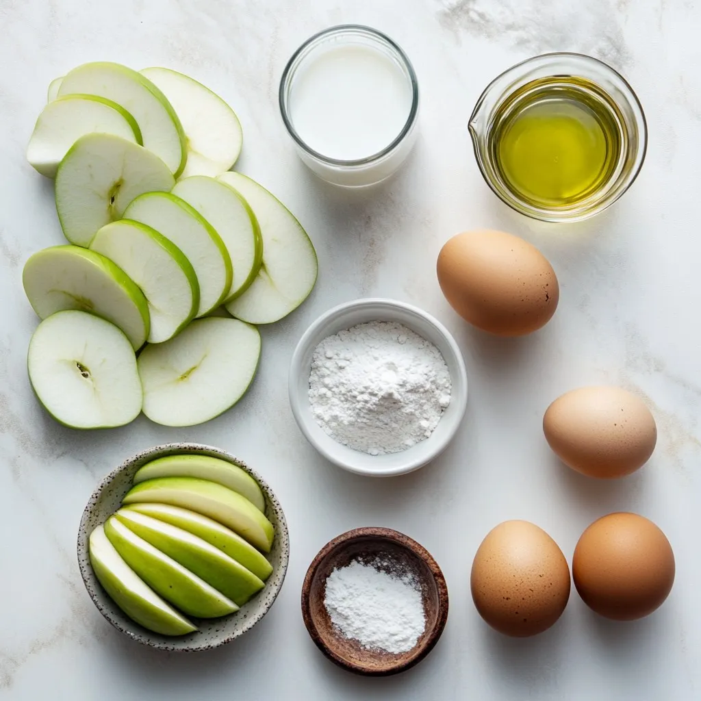 Hauptzutaten für den Französischen Unsichtbaren Apfelkuchen