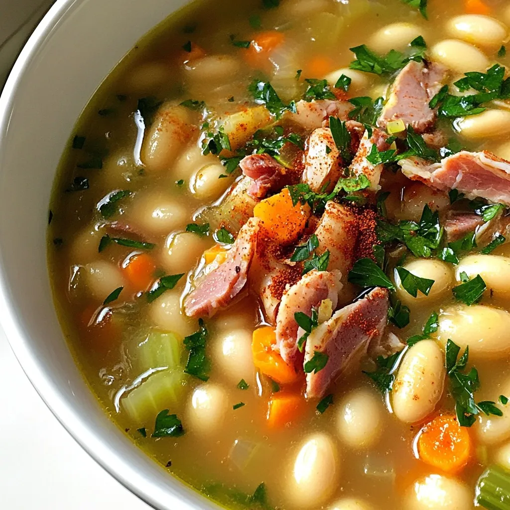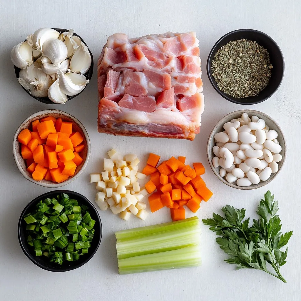 Die Hauptzutaten machen die Suppe besonders lecker. Der geräucherte Schinkenhals bringt einen tollen Geschmack. Ich wähle gerne die getrockneten weißen Bohnen, weil sie gut die Aromen aufnehmen. Zwiebeln, Karotten und Sellerie geben der Suppe eine schöne Basis. Gemeinsam machen sie die Suppe reichhaltig und nahrhaft.