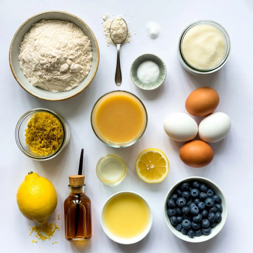 Hauptzutaten für den Glutenfreien Zitronen-Heidelbeer-Laib