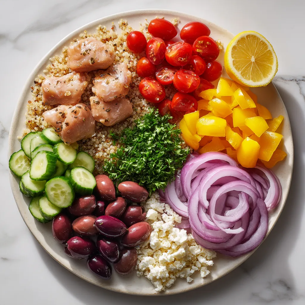 Um die perfekten griechischen Chicken Meal Prep Schalen zu machen, brauchst du einige Hauptzutaten. Diese geben deinem Gericht Geschmack und Fülle. Hier sind die wichtigen Zutaten: