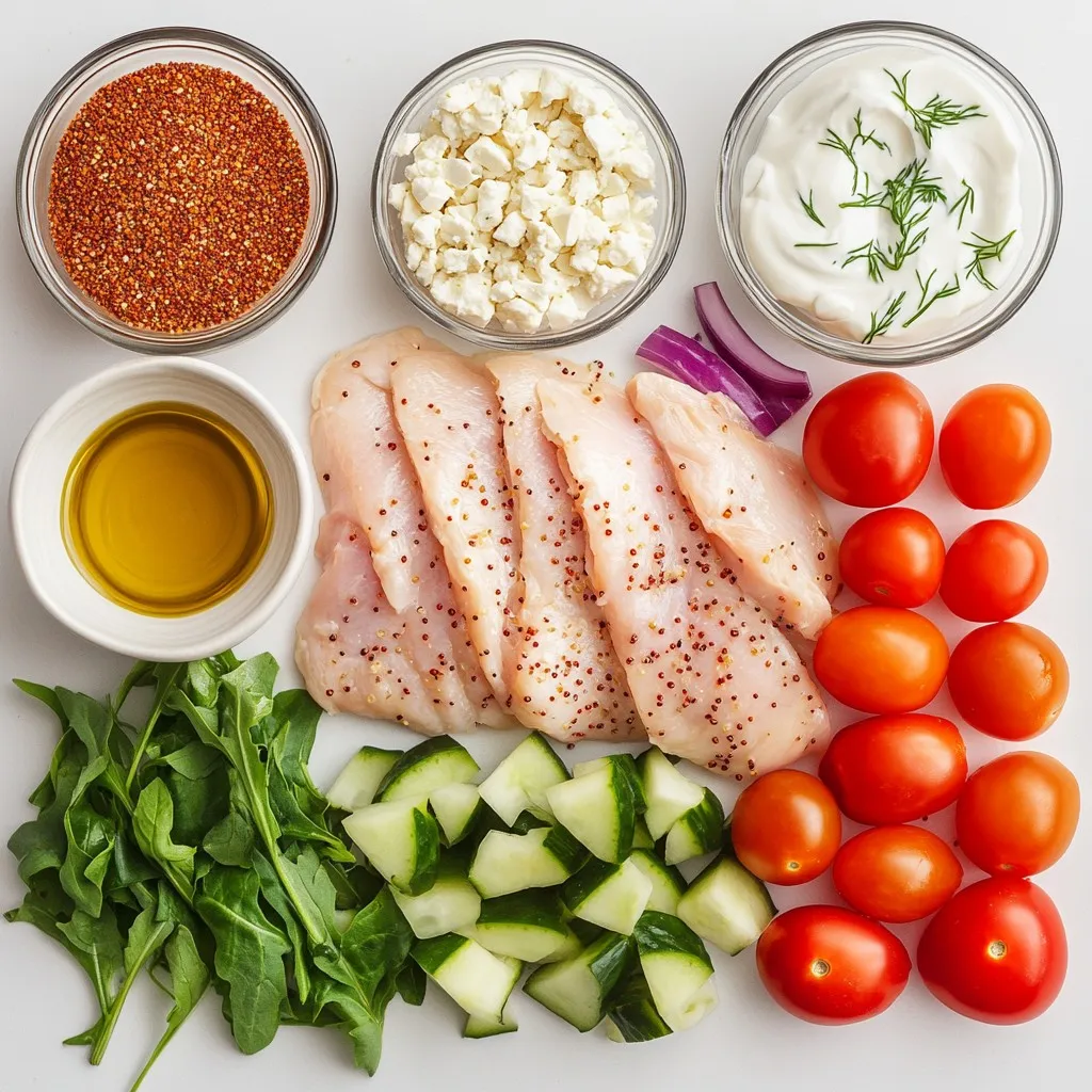 Diese Zutaten bilden die Basis für eine bunte und nahrhafte Mahlzeit. Quinoa gibt dir eine gute Portion Protein. Das Hähnchen bringt Geschmack und Fülle. Die frischen Zutaten sorgen für einen tollen Biss.