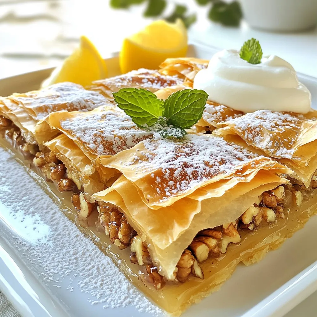 Eine köstliche und knusprige Pastete mit Honig und Walnüssen, perfekt für ein Dessert.