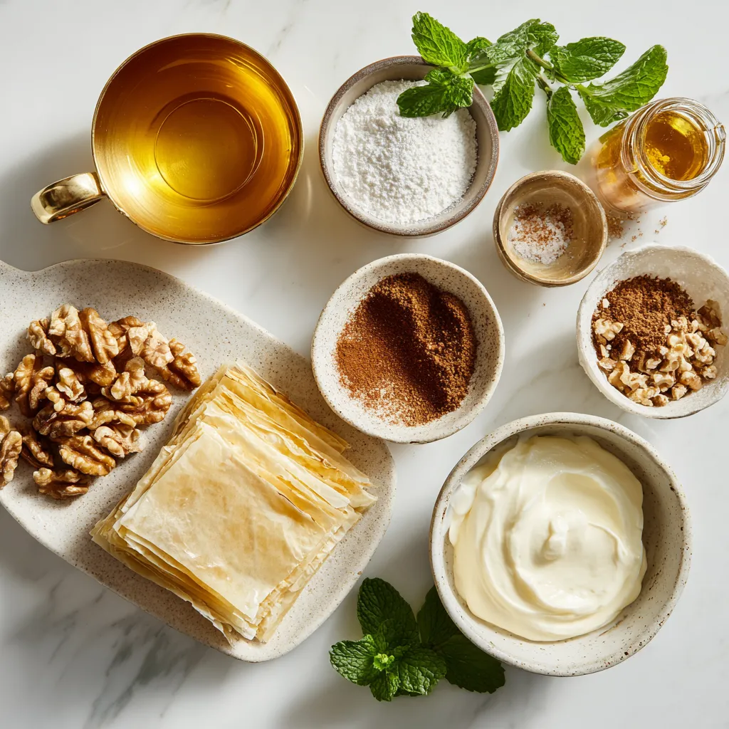 Für die Griechische Honigpastete brauchst du einige Hauptzutaten. Diese sind: