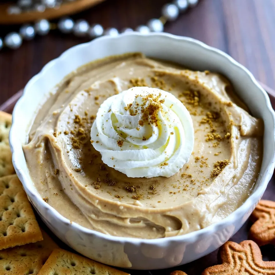 Ich liebe, wie die Muskatnuss und der Zimt die festliche Stimmung unterstreichen. Schlagsahne bringt eine luftige Textur. Das Dippen mit Graham-Crackern und Lebkuchen-Keksen macht Spaß.