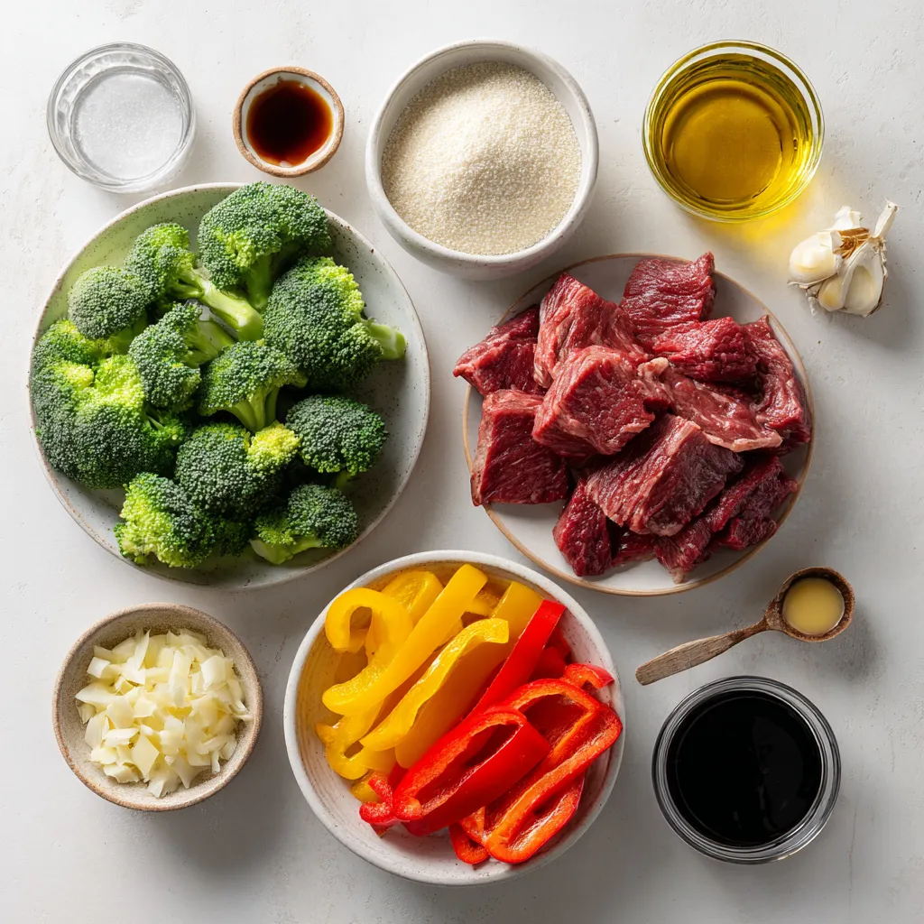 Hier sind die Zutaten, die du für Honig-Knoblauch-Rindfleisch mit Brokkoli brauchst: