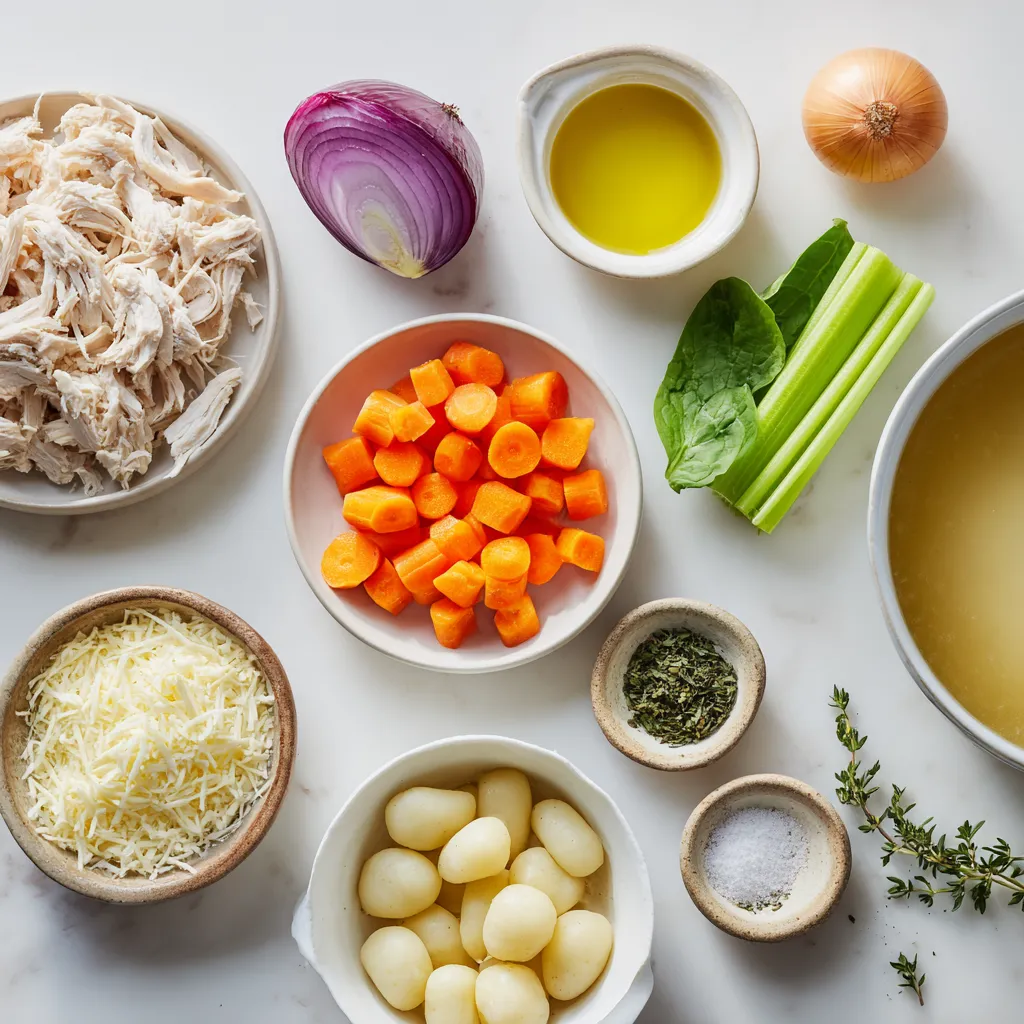Hauptzutaten für Hühnchen-Gnocchi-Suppe