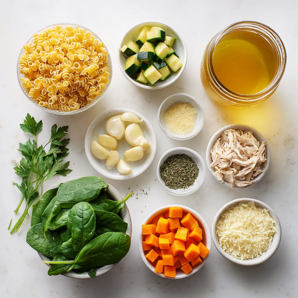- 1 Tasse kleine Pasta (wie Acini di Pepe oder Couscous)
