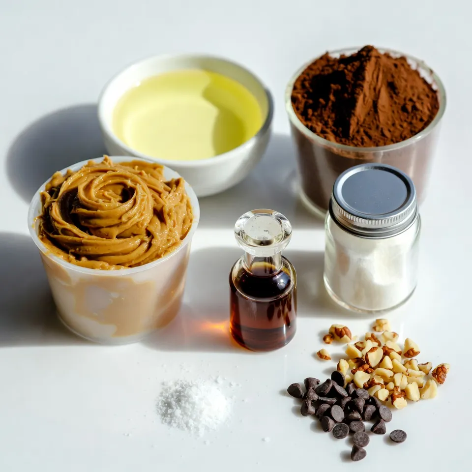 Hauptzutaten für Keto Schokoladen-Erdnussbutter-Fettbomben