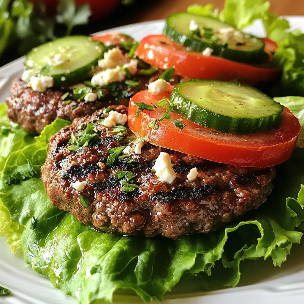Saftige Rinderburger mit Feta und frischen Kräutern, perfekt für eine ketogene Ernährung.