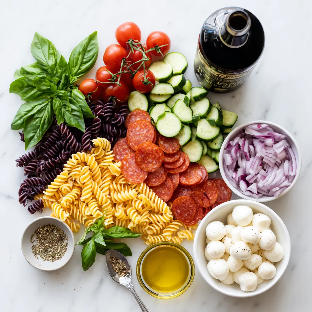 Um einen tollen italienischen Nudelsalat zu machen, brauchen Sie ein paar Hauptzutaten: