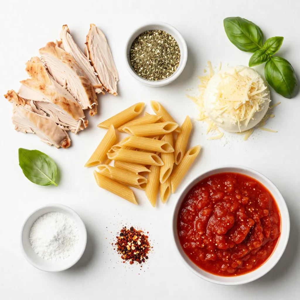 Die Hauptzutaten sind der Schlüssel zu einem großartigen Chicken Parmesan Casserole. Das zerkleinerte Hühnchen gibt dem Gericht viel Geschmack. Die gekochten Penne-Nudeln sorgen für eine gute Basis und die Marinara-Sauce bringt alles zusammen. Diese Mischung ist einfach und lecker.