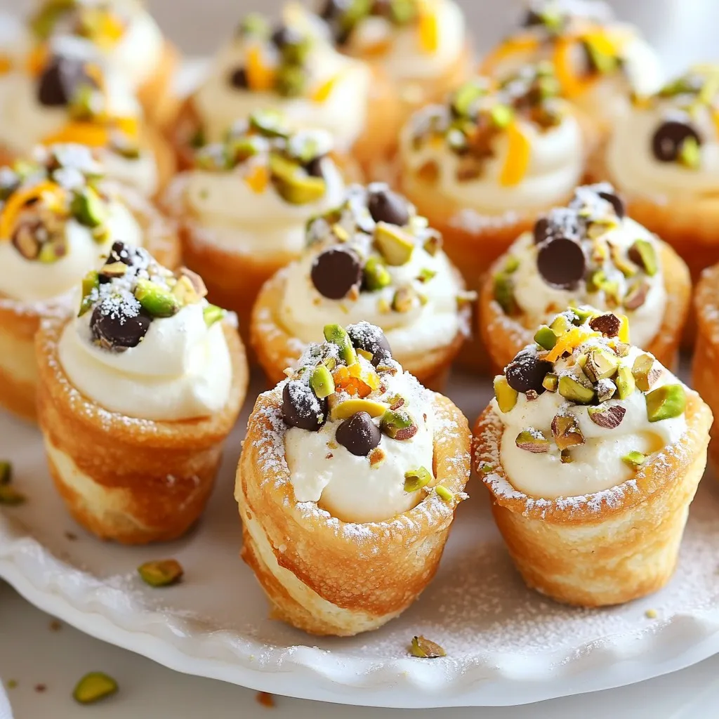Leckere Mini-Cannoli-Tassen gefüllt mit einer cremigen Käsemischung.