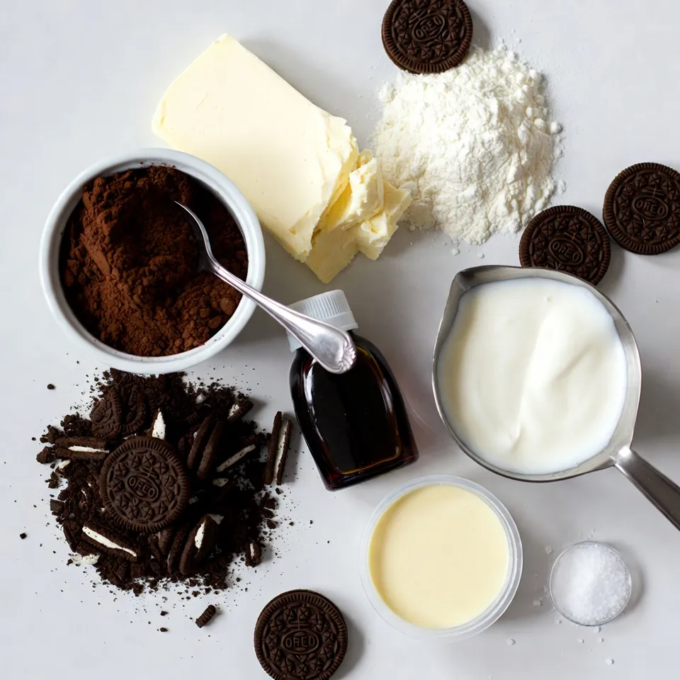Diese Zutaten sind die Basis für dein leckeres Dessert. Die Oreo-Kekse geben den perfekten Crunch und die Schokoladennote. Der Frischkäse macht die Füllung schön cremig. Puderzucker und Vanilleextrakt sorgen für die süße und aromatische Note. Das Kakaopulver verstärkt den Schokoladengeschmack und macht alles noch besser. Die Schlagsahne und der Sauerrahm geben der Füllung die richtige Konsistenz und Frische.