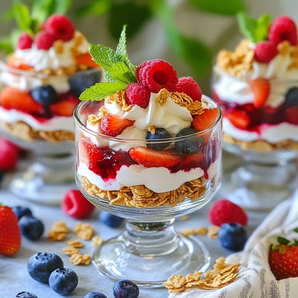 Wenn du glutenfrei kochen möchtest, wähle glutenfreies Granola oder zerbröselte Kekse. Diese Optionen sind leicht zu finden. Für vegane Alternativen nimm pflanzlichen Joghurt und pflanzliche Sahne. Verwende Agavendicksaft anstelle von Honig. Diese Anpassungen machen das Dessert für alle geeignet und lecker.