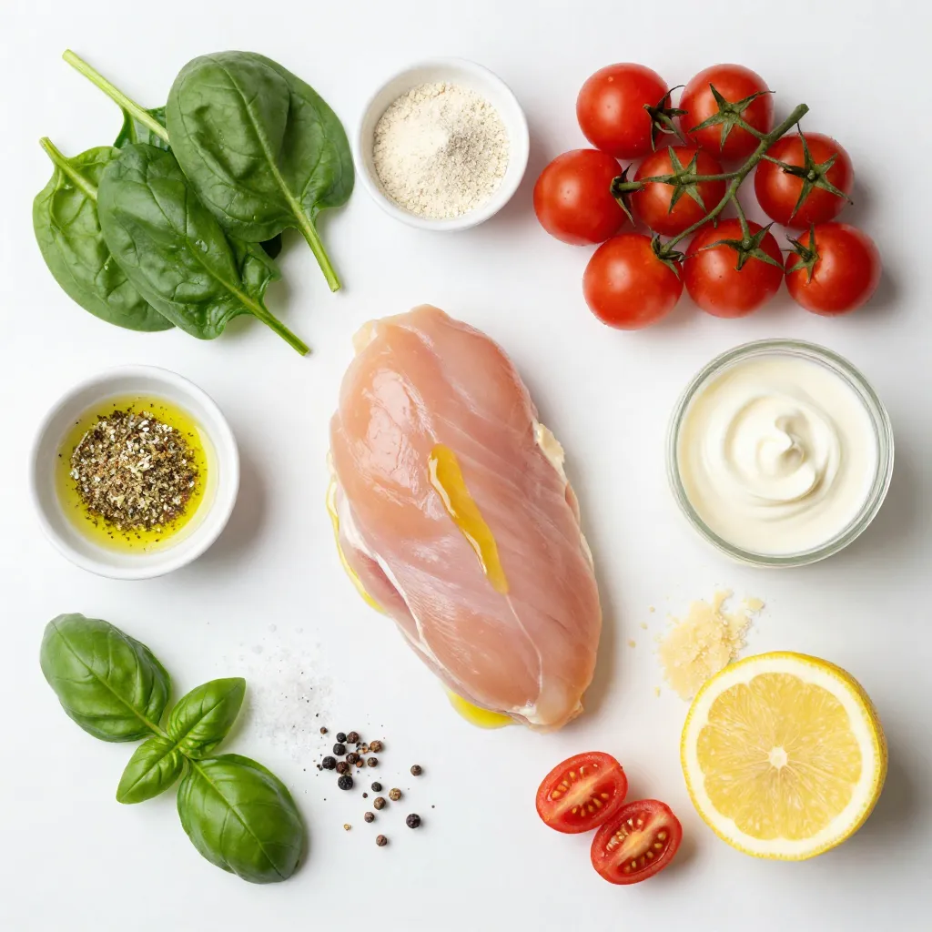 Die Hauptzutaten sind einfach und leicht zu finden. Hähnchenbrust ist zart und nimmt Gewürze gut auf. Olivenöl verleiht Geschmack und hilft beim Braten. Kirschtomaten bringen Süße und Frische in das Gericht. Schlagsahne sorgt für die cremige Konsistenz, die wir lieben. Parmesan fügt einen herzhaften Umami-Geschmack hinzu.