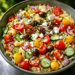 Nach dem Kochen gießen Sie die Pasta ab und lassen sie kurz abkühlen. Mischen Sie sie dann mit frischem Gemüse und einem leckeren Dressing. Ein Rezept, das ich liebe, ist das Mediterranean Orzo Delight. Es enthält viele gesunde Zutaten und ist einfach zuzubereiten.