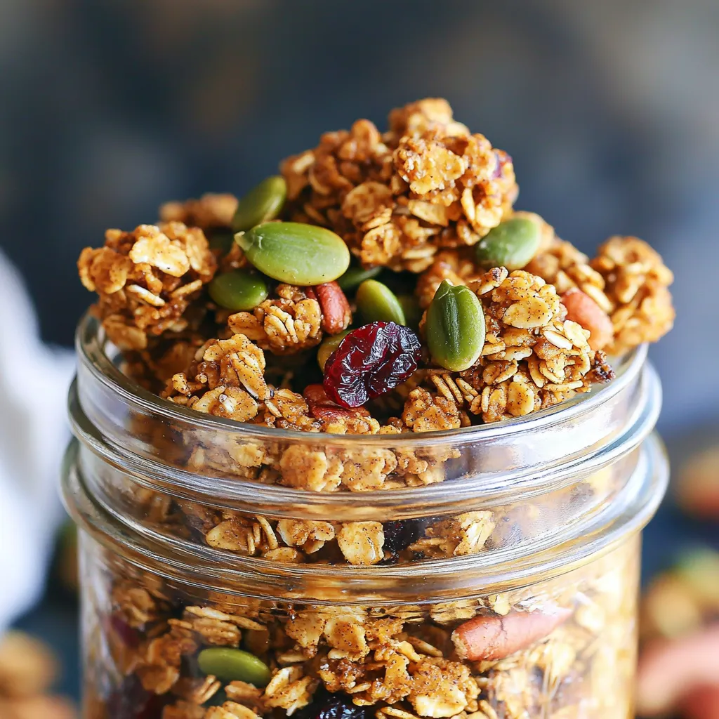Um den Geschmack zu verbessern, experimentiere mit verschiedenen Nüssen. Mandeln oder Walnüsse passen gut dazu. Du kannst auch die Süße anpassen, indem du mehr Honig oder Ahornsirup hinzufügst. Für mehr Würze, erhöhe die Menge an Kürbiskuchengewürz. Das gibt dem Granola einen tollen Geschmack.