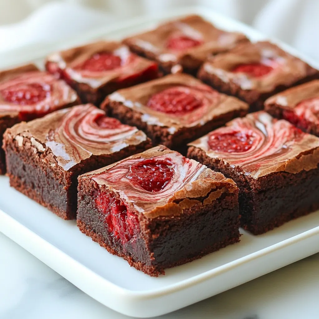 Leckere Brownies mit einem Himbeer-Schokoladen-Swirl.