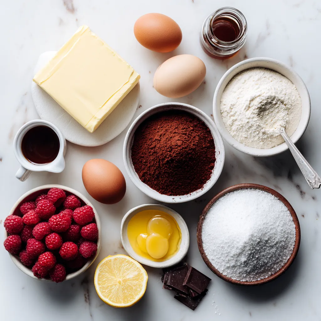 Hauptzutaten für Himbeer-Schokoladen-Brownies