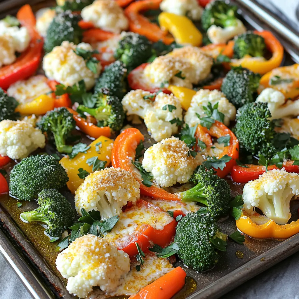 Diese Zutaten bringen Farbe und Geschmack auf dein Blech. Brokkoli und Blumenkohl sind sehr nahrhaft. Karotten fügen einen süßen Crunch hinzu. Paprika bringt Frische mit.