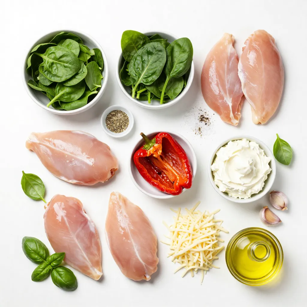Wähle frische Hähnchenbrustfilets. Achte auf eine schöne Farbe und keine unangenehmen Gerüche. Für den Spinat, greif zu leuchtend grünen Blättern. Diese sind knackig und frisch. Geröstete rote Paprika kannst du selbst rösten oder im Glas kaufen. Achte darauf, dass sie ohne Zusatzstoffe sind. Für den Käse wähle eine Marke, die du magst. Frischkäse sollte weich und streichfähig sein.
