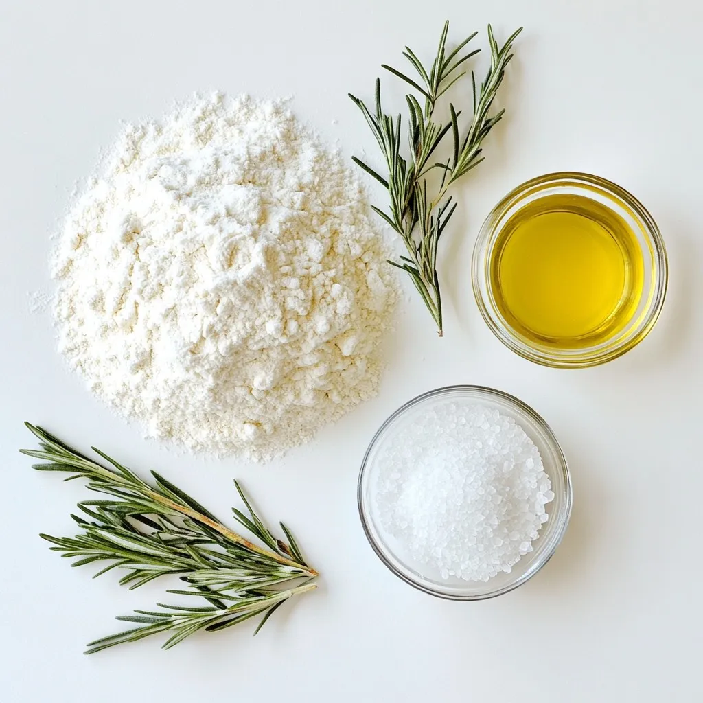 Die Zutaten für die rustic rosemary focaccia sind einfach zu finden. Das Allzweckmehl ist die Basis. Es gibt vielen Broten ihre Struktur. Meersalz gibt dem Brot Geschmack. Zucker hilft der Hefe zu arbeiten und macht das Brot leicht süß. Trockenhefe ist der wichtigste Teil. Sie lässt den Teig aufgehen und macht die Focaccia luftig.