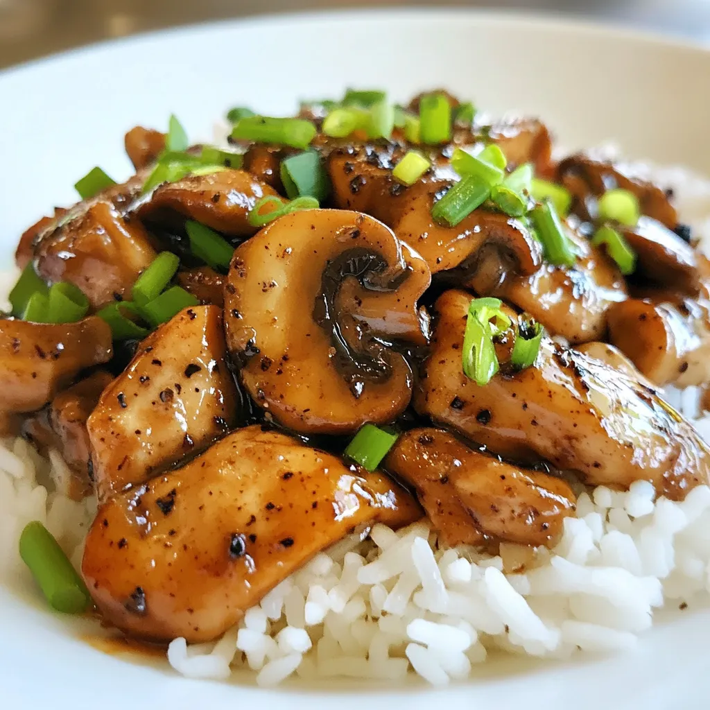 Ein schmackhaftes Hähnchengericht mit Pilzen und einer würzigen Sauce.