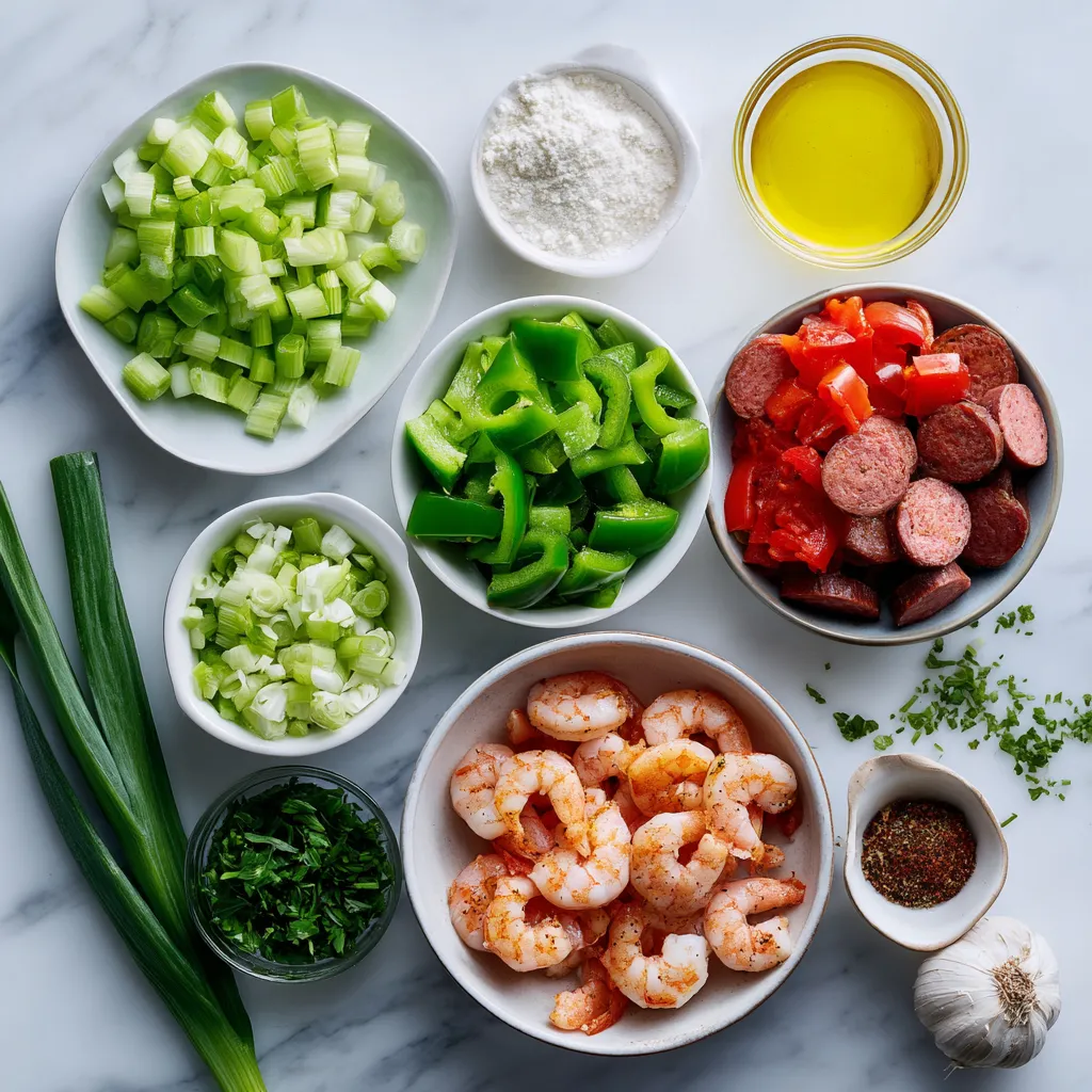 – Garnelen: Du benötigst 450 g große Garnelen. Sie sollten geschält und entdarmt sein. Das gibt deinem Gumbo eine tolle Textur und einen feinen Geschmack. Frische Garnelen sind ideal, gefrorene funktionieren aber auch gut.